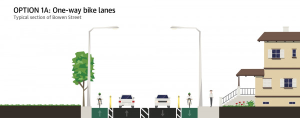 Option 1A scored the highest but as there isn’t enough space along the whole route for bike lanes on both sides, we’ve gone with a modified version of option 1B.