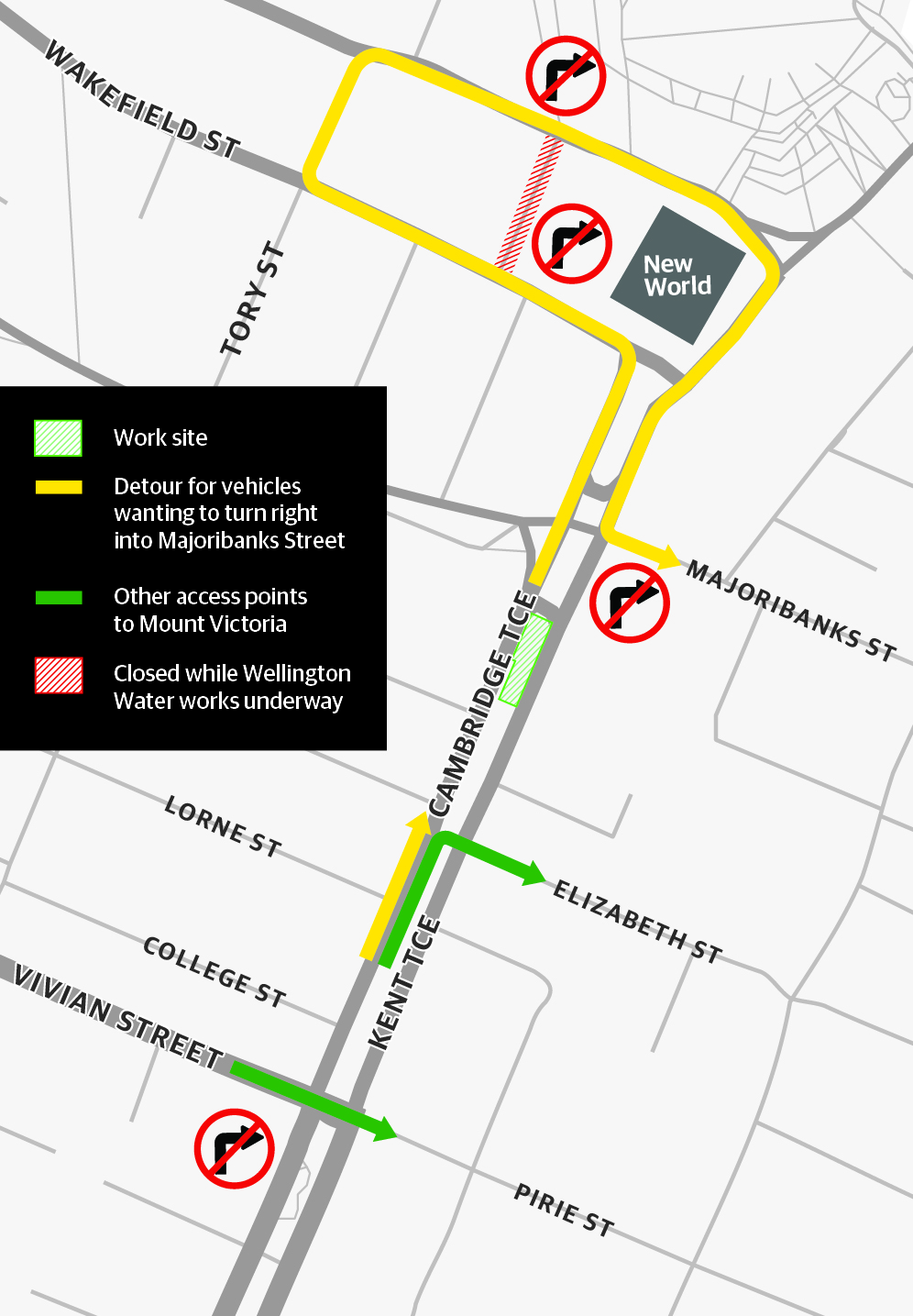 The new dedicated two-way bike lane on Kent/Cambridge Terraces is open, and the righthand turn into Majoribanks Street has reopened, so no need to turn early or follow the old detour. Drivers, please keep an eye out for cyclists as they use the new route to and through the intersection. For anyone on foot, cyclists will be heading in both directions so look both ways, stick to pedestrian areas and stay safe. The new centre island crossing is in place but isn't operational yet, so continue using the existing crossings until further notice. Enjoy the kōwhai, native birdsong and new landscaping as you pass by – it’s looking lovely!