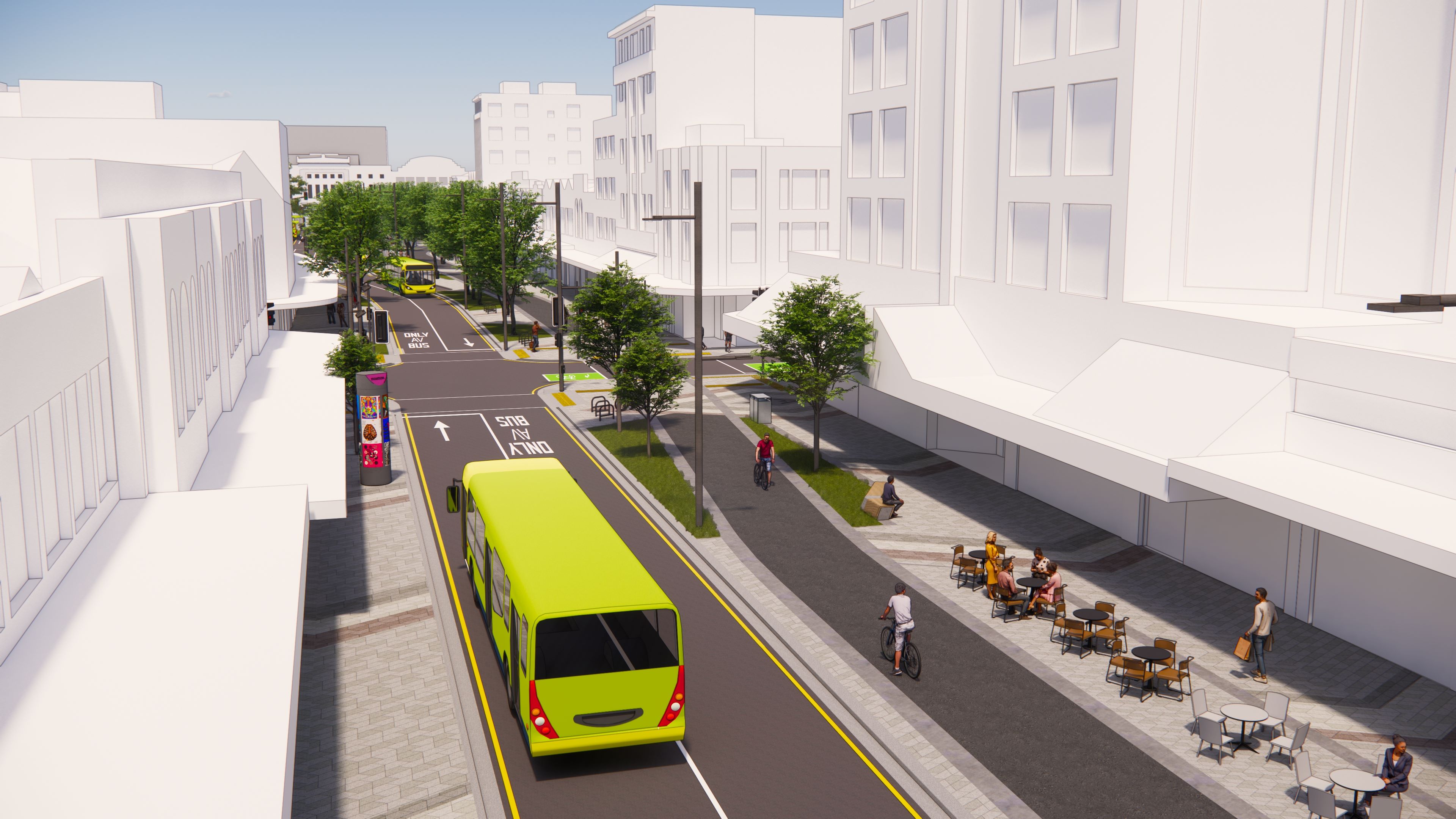 Bus stops will be spaced so you won’t have to walk more than a few minutes to your closest stop from any point along the Courtenay Precinct.