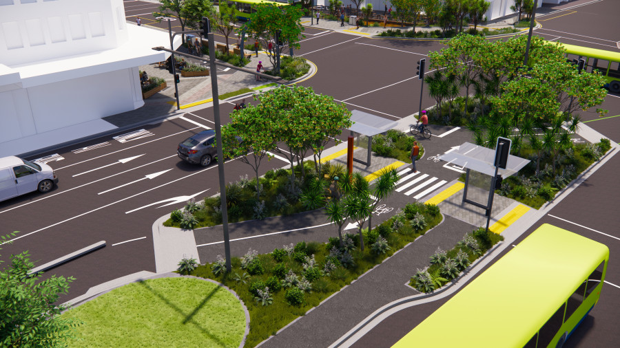 Artist's impression of the new pedestrian island between Kent and Cambridge Terrace