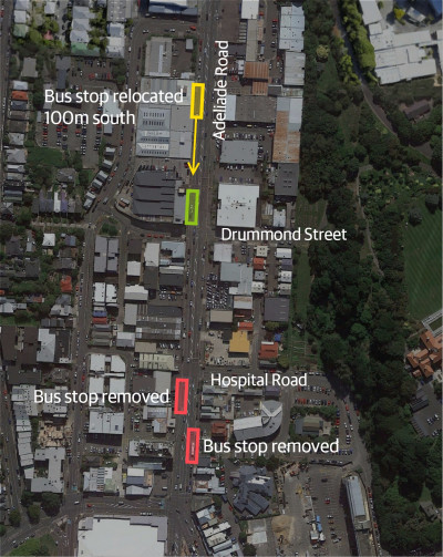 Changes along Adelaide Road and side streets: