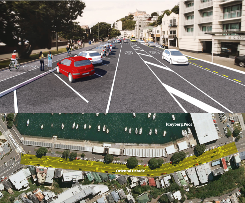 The short section of pathway on Oriental Parade between Herd Street and Freyberg Pool was too narrow at busy times to safely accommodate the large numbers walking, biking and running – so we've changed the layout on the road side of the trees to provide more space for people.