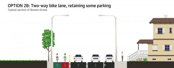- Two-way bike lane – retain some parking