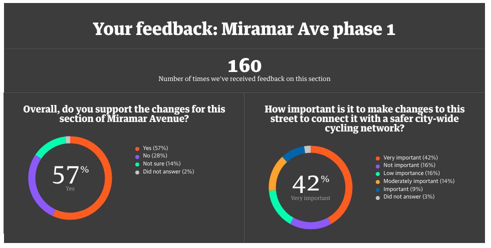 Changes were made to the proposal for Miramar Avenue (section 1) as a result of the feedback received, and the concept was further developed during detailed design.