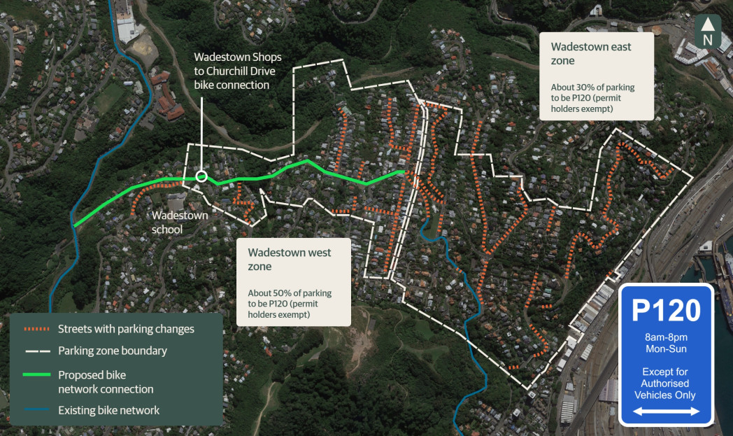 About 50 percent of the parking in Wadestown west and about 30 percent in Wadestown east would have no restrictions.